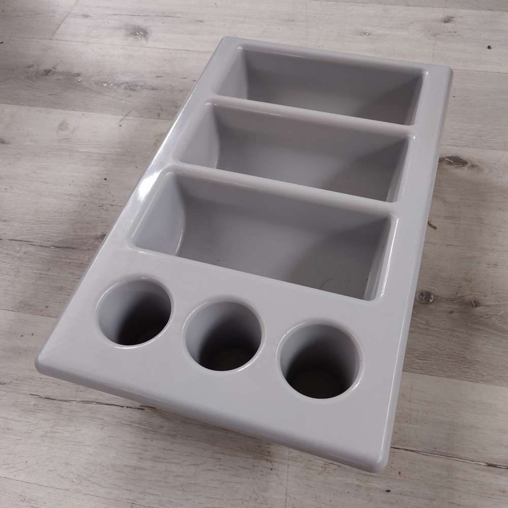 2. drei große Fächer, ein Fach mit zwei Löchern
