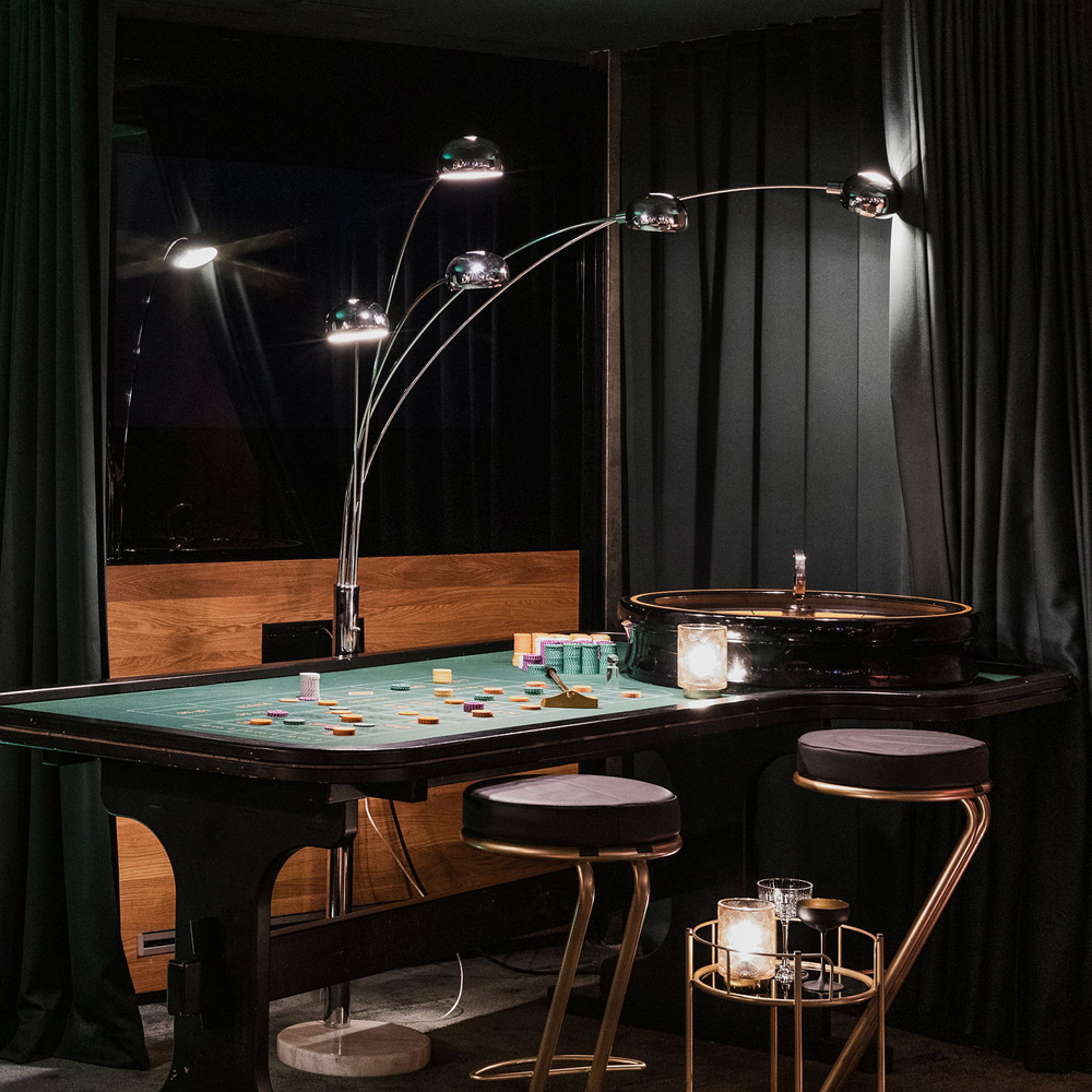 Platz für über 15 Spieler stehendMaße: L 240 cm, B 135 cm, H 86 cmInkl. Equipment, CasinoqualitätAmerican Roulette TuchNur mit Croupier buchbar!