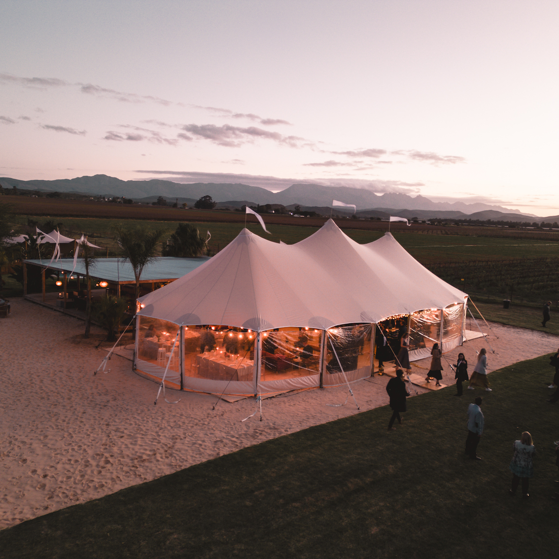 Sailcloth Zelt 9,5 x 22 m Basis ohne Montage, Boden & Seitenwände