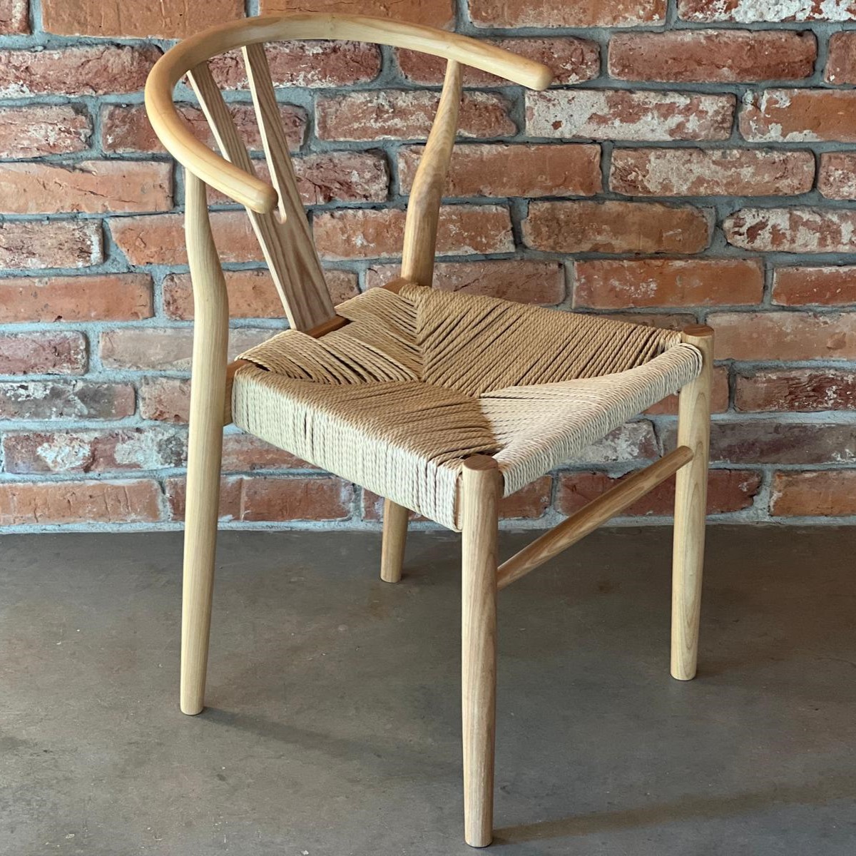 Hellbrauner Stuhl mit geflochtemenem Polster