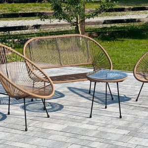 Tisch - aus Baumwollschnüre - mit Glasplatte - natur quantity
